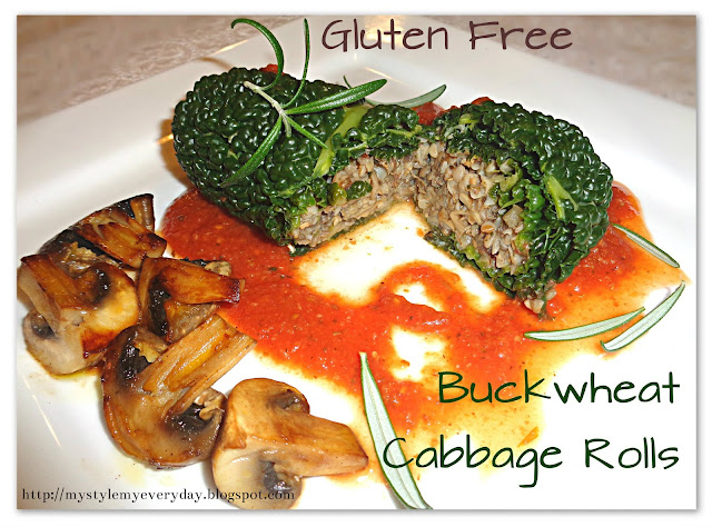 A było to tak. Gołąbki robiłam wielokrotnie i to z najróżniejszymi farszami. Zazwyczaj była to kapusta, zwykła biała. Tym razem kupiłam kapustę włoską. Z farszu, który przygotowałam wyszło dziewięć cudnych rollsów - gołąbków i została obgotowana główka kapusty. Tak to powstały dwa kolejne dania. Potrawa jednogarnkowa i to w dwóch wersjach, świetna na mroźną zimę oraz kapusta zapiekana z gruszką, rewelacyjna na obiad lub kolację. O tych daniach będzie w następnych postach, a teraz zapraszam na gołąbki z kaszą i pieczarkami ,z aksamitnym sosem pomidorowym.
