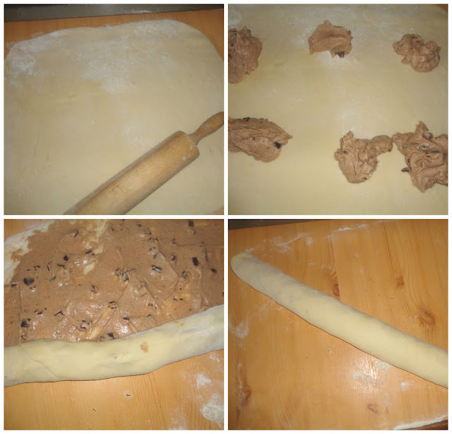 - podziel ciasto na 4 części i rozwałkuj na prostokąty (robiłam ręką)